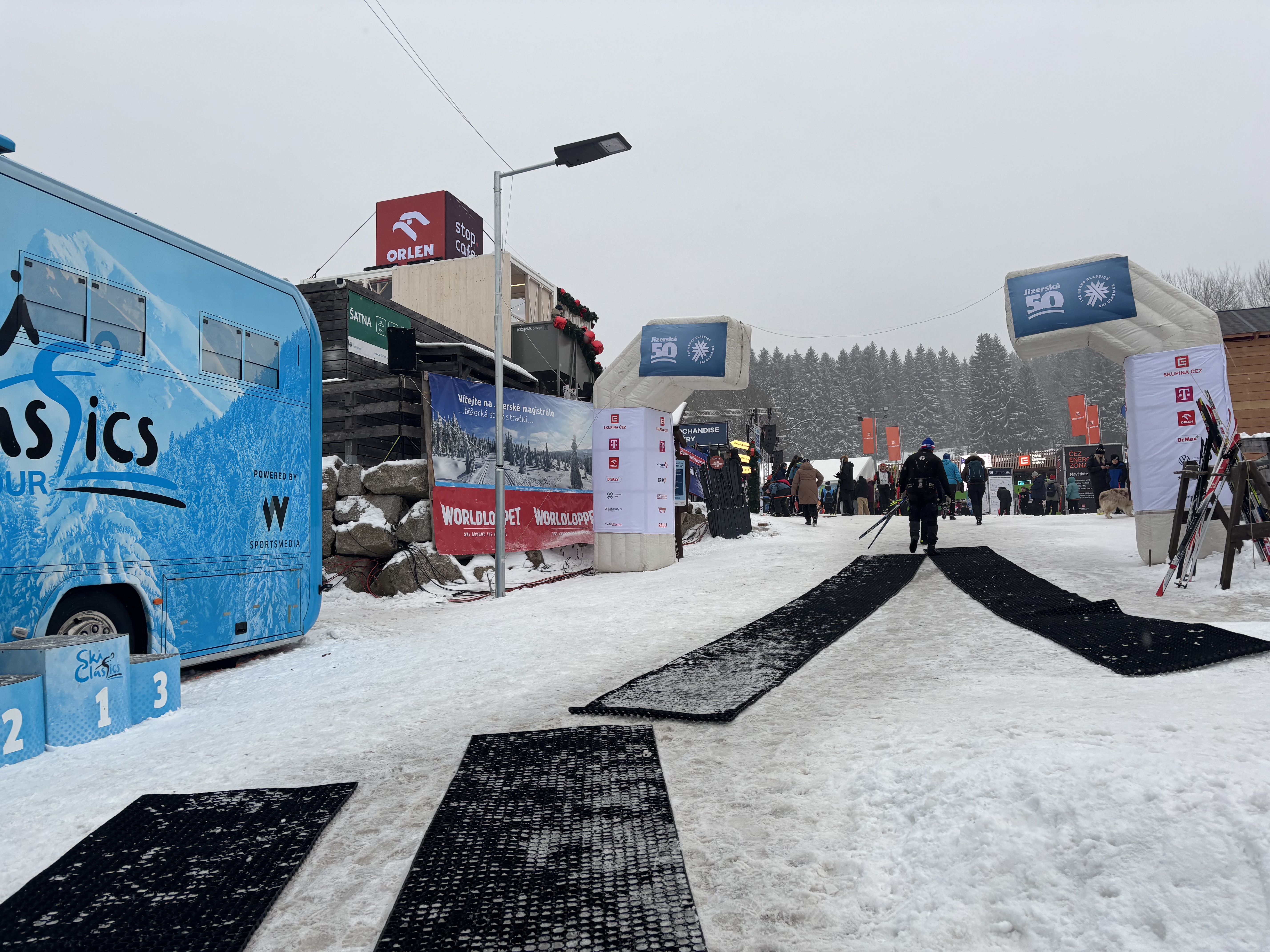 Během hlavního závodu přijede kyvadlovou dopravou během 2 hodin 4–5 tisíc lidí v běžkařských botách. Povrch je uklouzaný, lidé padají. Není možné solit ani sypat štěrk. Potřebujeme bezpečné a opakovaně použitelné řešení.