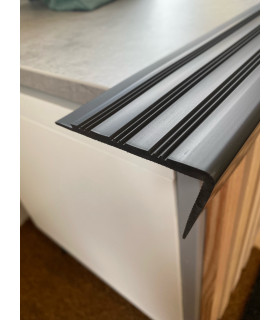 Schodová hrana z PVC pro interiérová schodiště. Zabraňuje uklouznutí na schodech, odlepování vinylové podlahy a brání poškození schodů. Jde také o funkční doplněk vinylových podlahových krytin (linolea), který zajistí hezké a pevné napojení krytiny na hranu schodu.